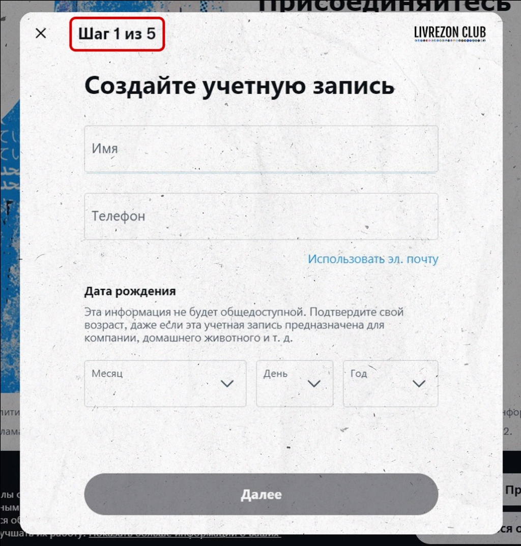 Менее удачный вариант действий – раздробить регистрацию на несколько шагов, на каждом из которых собирается небольшое количество данных. Вариант, при котором 20 пунктов разбиты на 5 шагов по 4 пункта, лучше, чем одна «простыня» из 20 полей, хотя бы потому, что четыре пункта теоретически можно уместить на одном экране. Тем не менее, дробление – это лишь видимость упрощения и ускорения регистрации при их фактическом отсутствии. Этот подход используется (или использовался, в зависимости от того, когда вы читаете эту статью) при регистрации в Twitter.