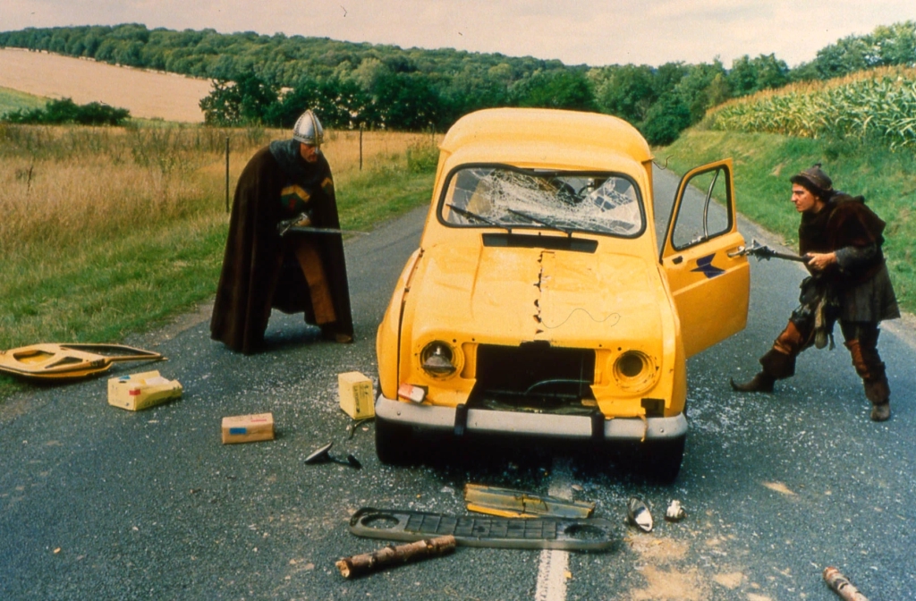 Пример — известная французская комедия «Пришельцы» Жана-Мари Пуаре: рыцарь и оруженосец из Средневековья переносятся в XX век. Не зная ничего о современной жизни, они залезают в ванну в одежде, используют предметы не по назначению, принимают автомобиль за чудовище и начинают его крушить.